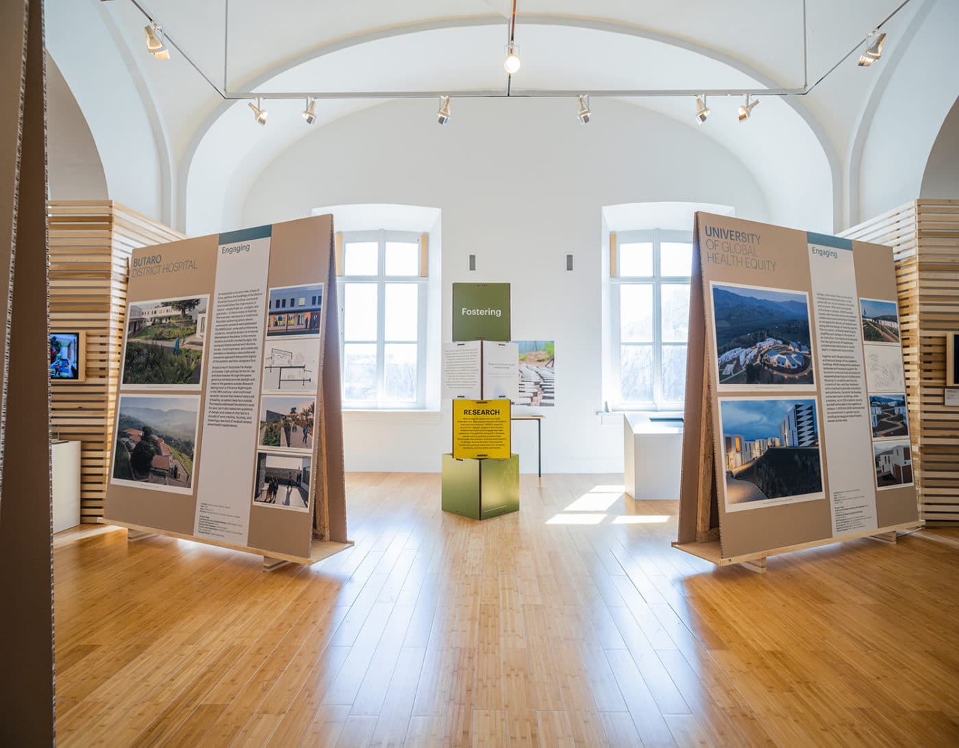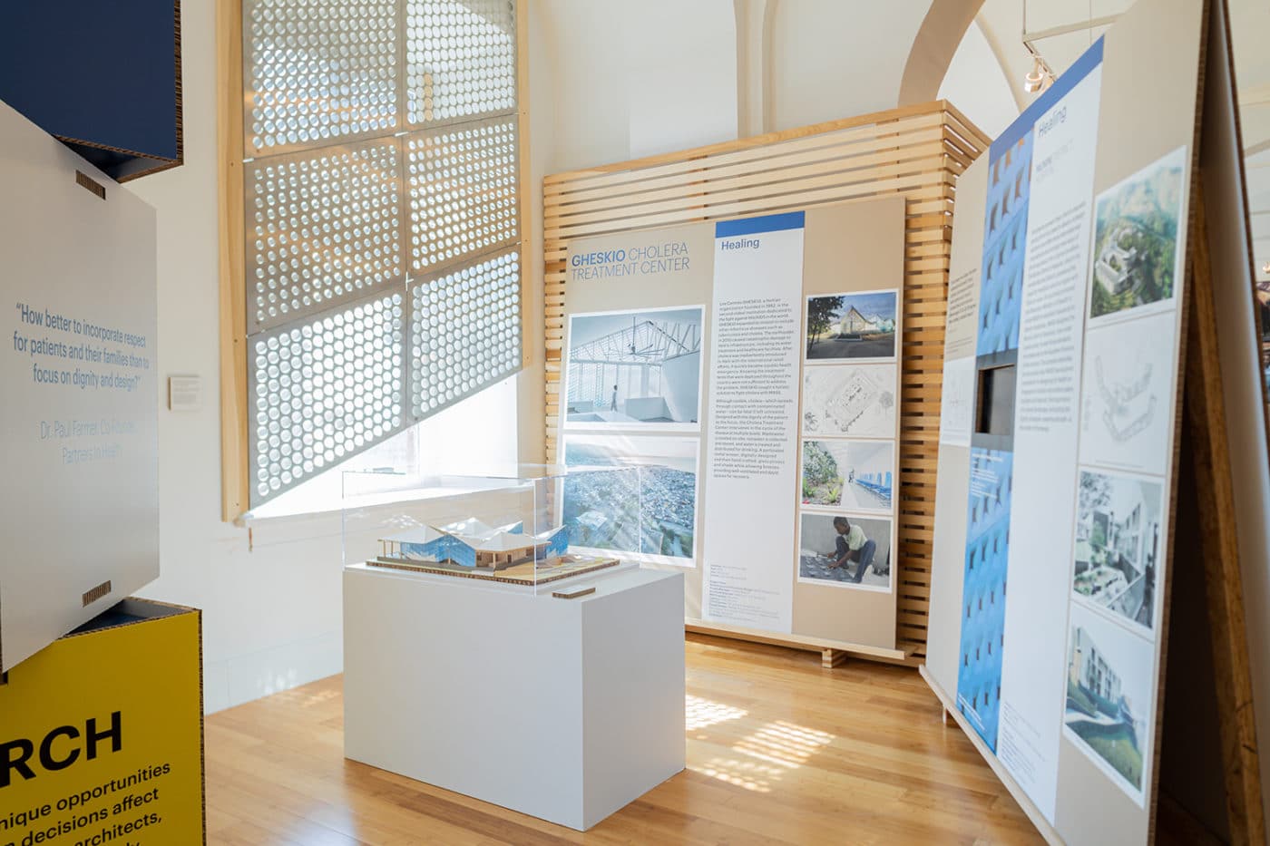 The 3,000-square-foot exhibition introduces MASS Design Group’s extraordinary portfolio, including completed buildings, proposed projects, and applied research initiatives. Photographs, videos, renderings, and models convey the firm’s groundbreaking approach to its architectural projects examining how the firm’s nonprofit status enables it to take on ambitious projects that traditional design firms might not, and how its collective organizational structure supports its mission to address society’s most challenging problems through socially conscious design strategies. In the Great Hall, visitors can experience a demonstration structure of the firm’s Lo-Fab Pavilion, created in collaboration with students and faculty at Virginia Tech School of Architecture + Design’s Center for Design Research for the 2015 Boston Design Biennial.