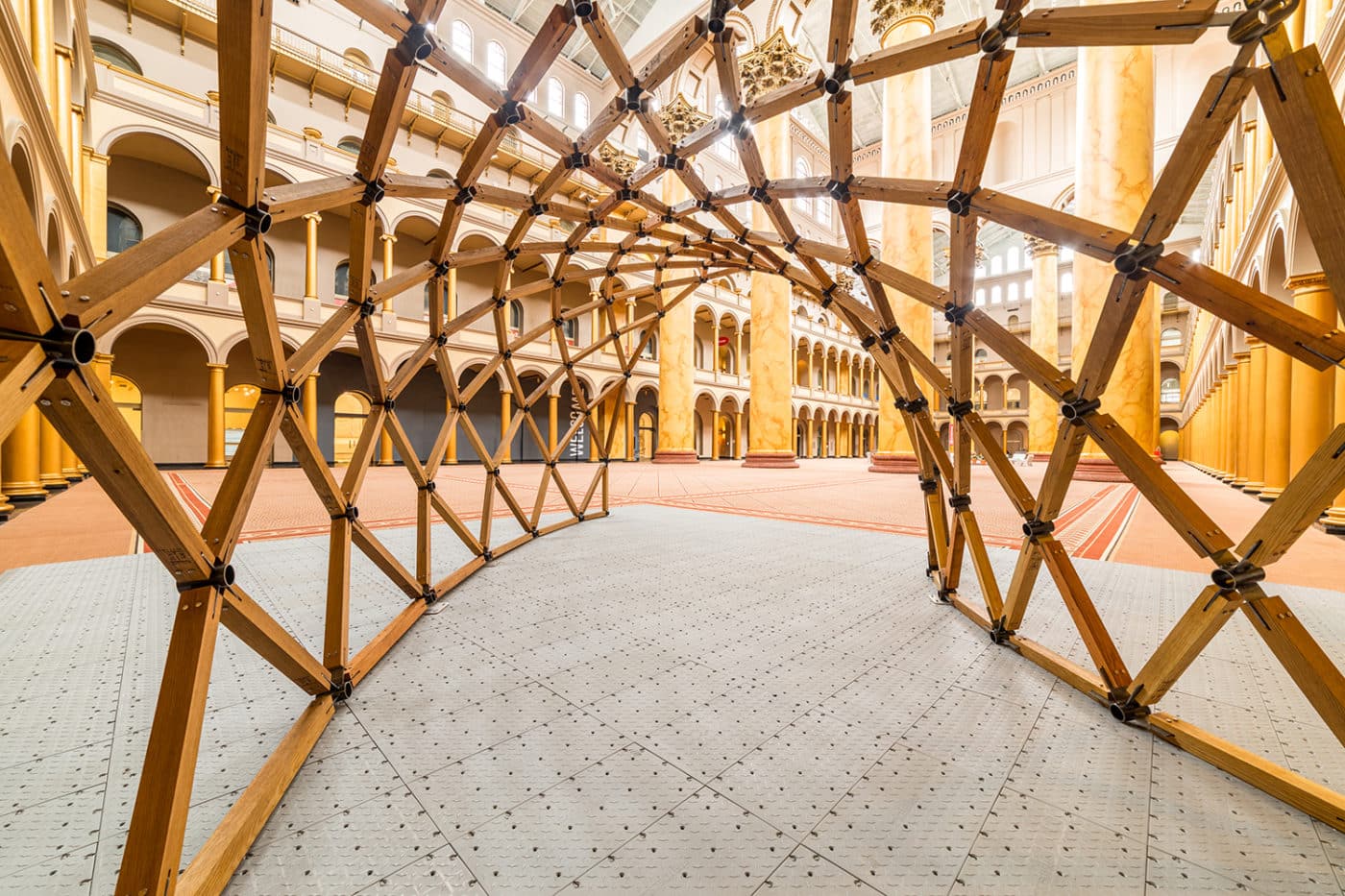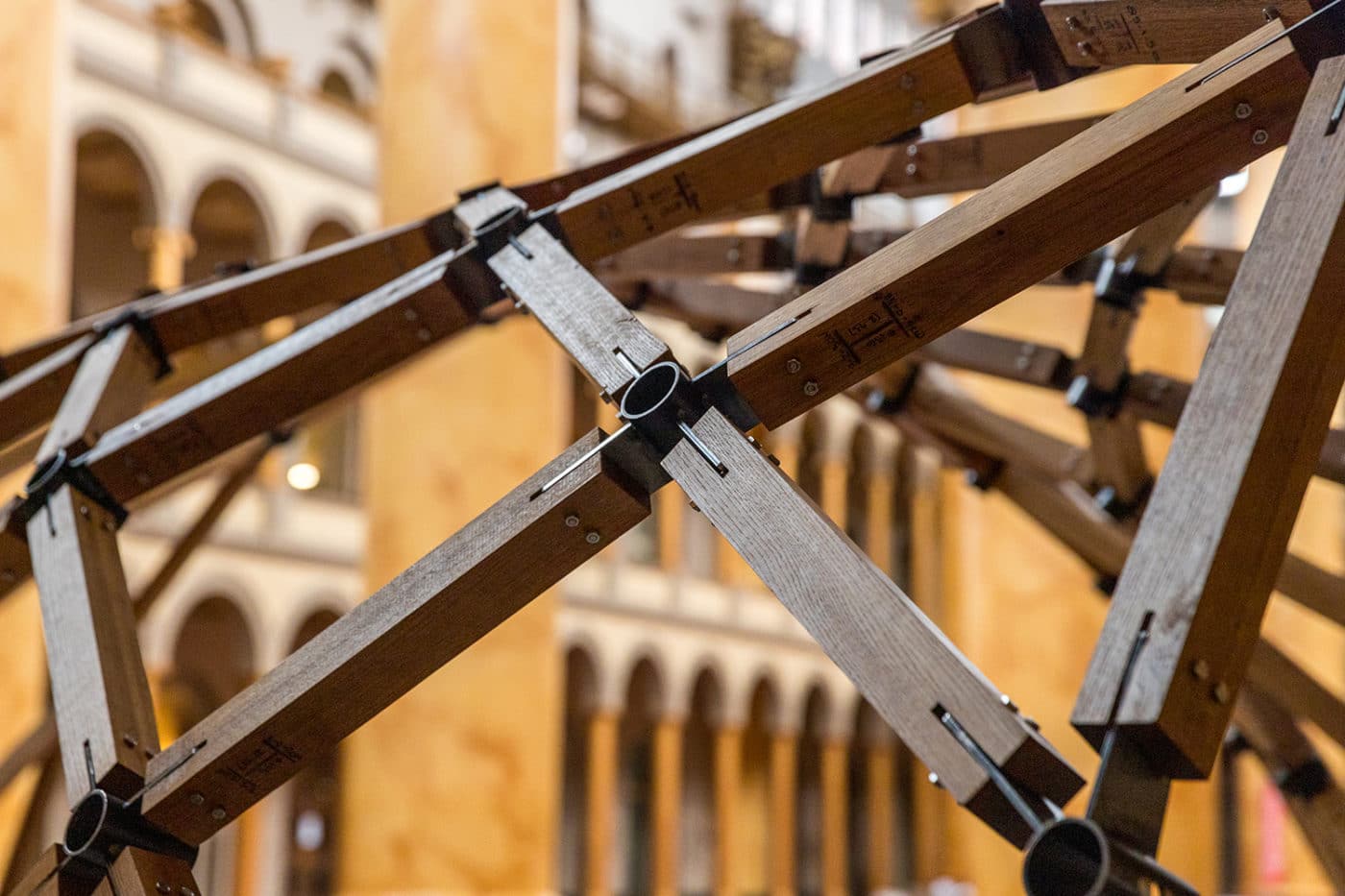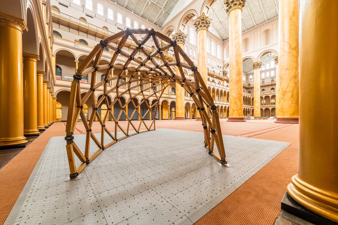 As part of this exhibition, the National Building Museum is also hosting the Washington, D.C., debut of the Gun Violence Memorial Project, designed by MASS Design Group in 2019. Four glass houses represent the many gun-related deaths that occur over a single month in the U.S. The installation, which is on the ground floor and free to all visitors, combines architecture with memory, advocacy, and objects donated by families who have lost loved ones to gun violence, creating both a memorial and an archive.