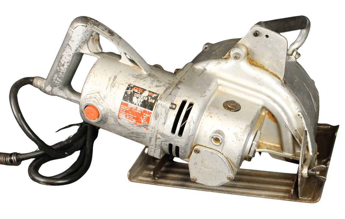 This 10″ circular saw was originally designed in the 1970s and used to cut notches in roof beams for custom houses in California. However, this powerful saw had few safety measures and was deemed so dangerous that it was outlawed by the Occupational Safety and Health Administration (OSHA) soon after. This saw in particular lacks a trigger that stops its circular motion when it is released; the saw will keep going even without human input. This could easily result in death, or at least heavy maiming.
