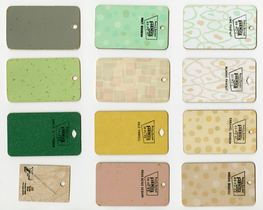 As a longtime user of Formica laminate custom countertops, Stuart Bollock and Bollock Enterprises, Inc donated several samples of Formica patterns to the Museum in 2024. These samples fill in gaps in the original Formica donation, providing context to the brand’s iconic pattern history and bringing the Museum’s collection closer to full comprehensiveness.