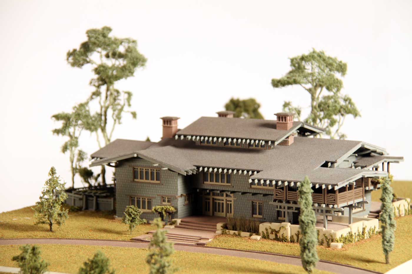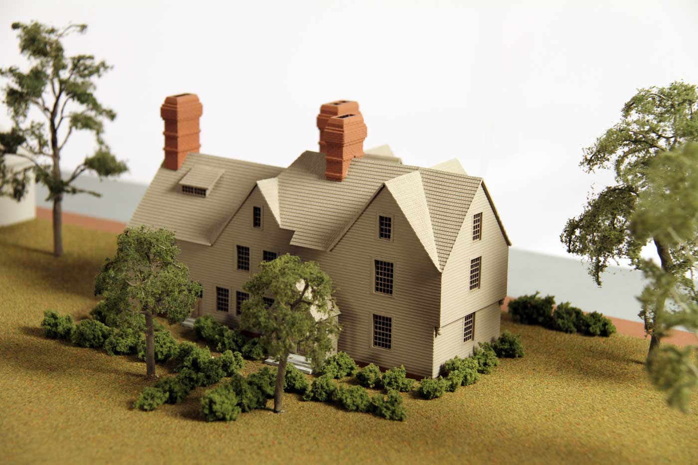 The Museum commissioned scale models of 14 iconic American homes run down the center of the gallery space, delighting visitors who recognize such special buildings as Mount Vernon and the John Hancock Center. Photographs complementing the models show how Americans used ideas from these famous structures to design their own more modest homes.