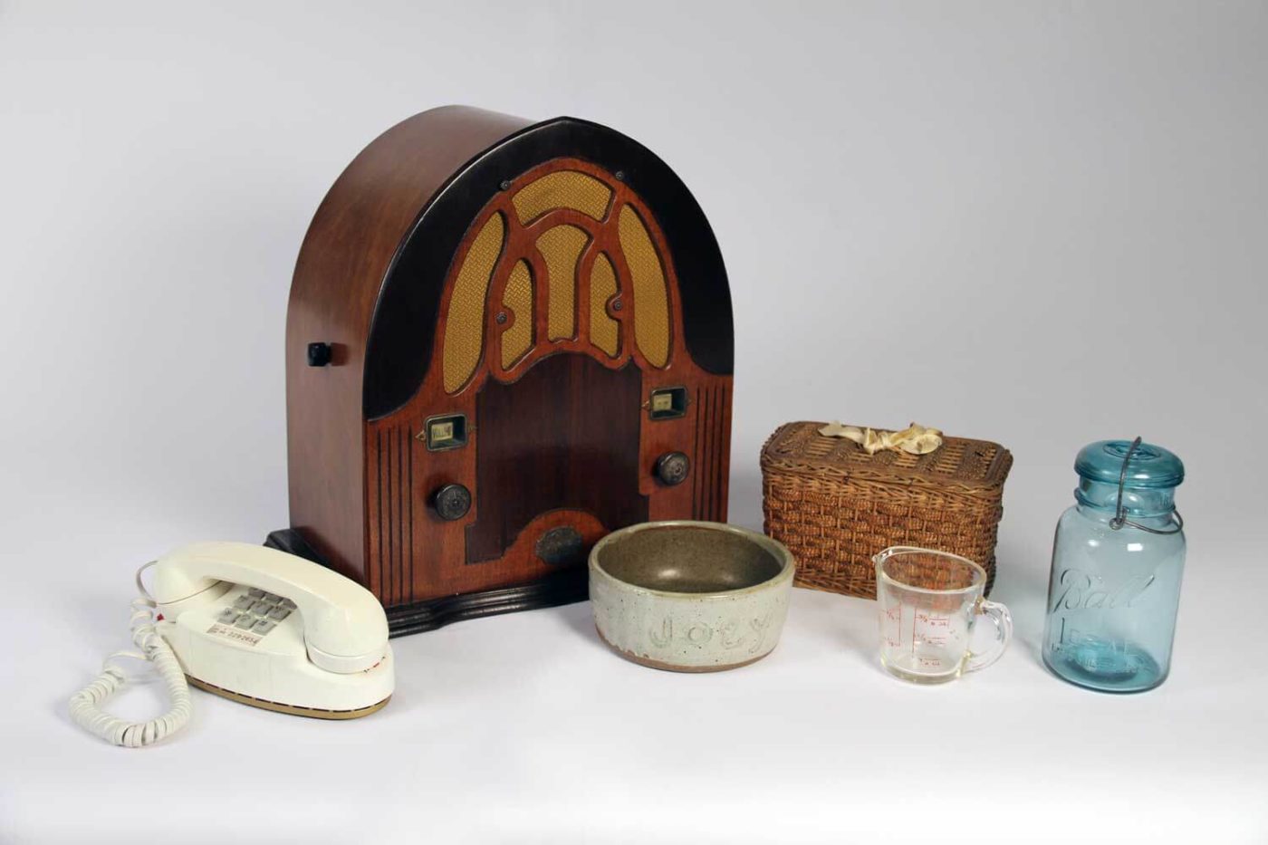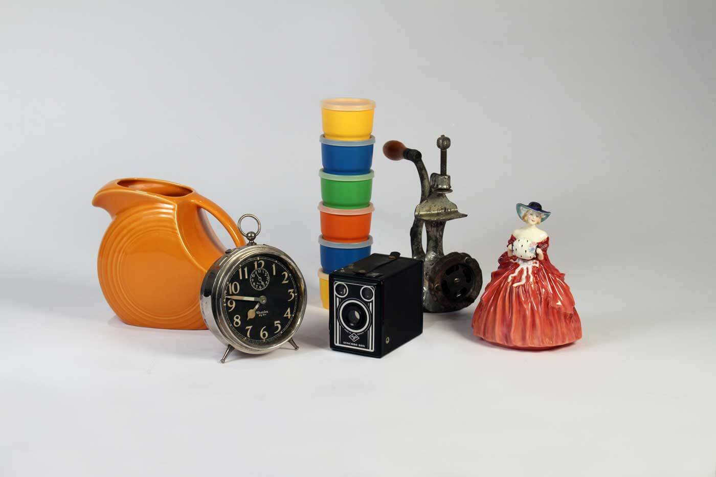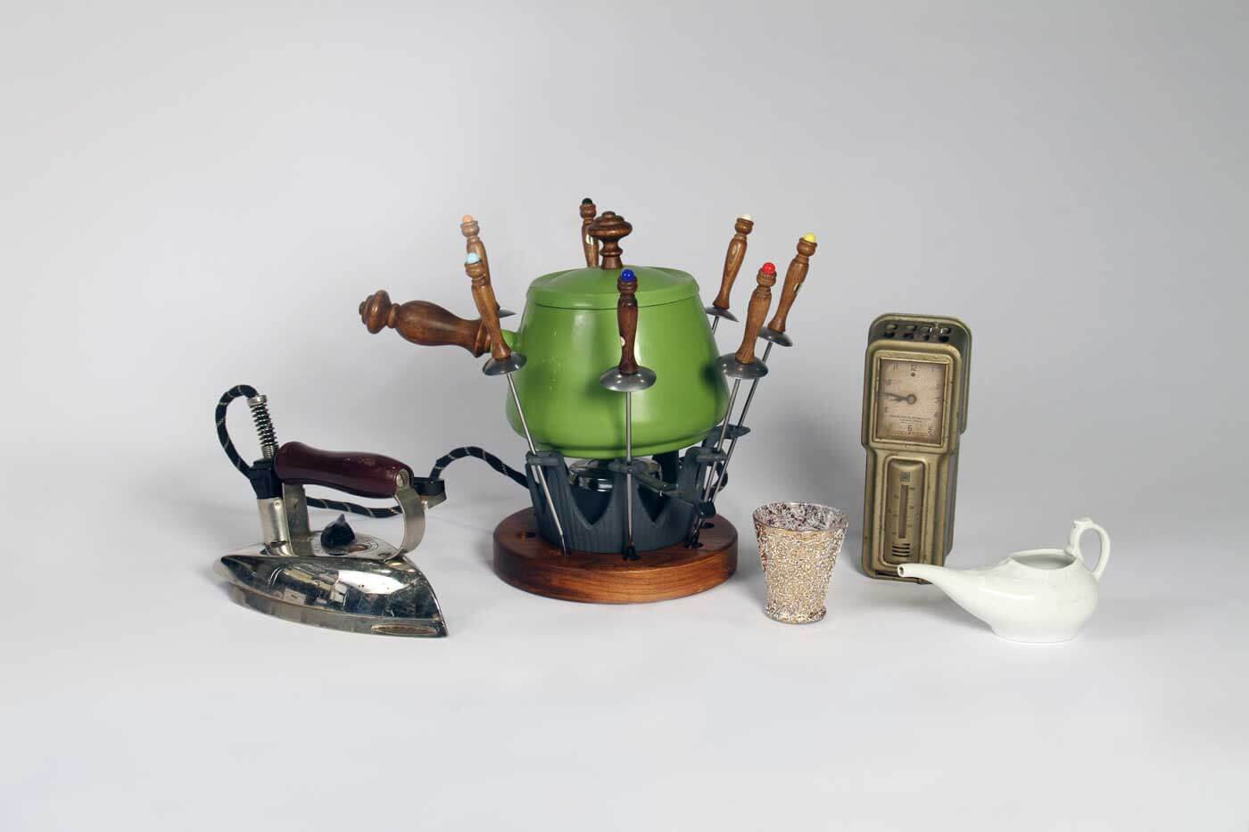 A dramatic display of hundreds of household goods used over the course of the past several centuries includes a butter churn; a poster of Farrah Fawcett; a fondue set; and a hand-painted screen door. Each item tells its own story of how a house becomes a home.