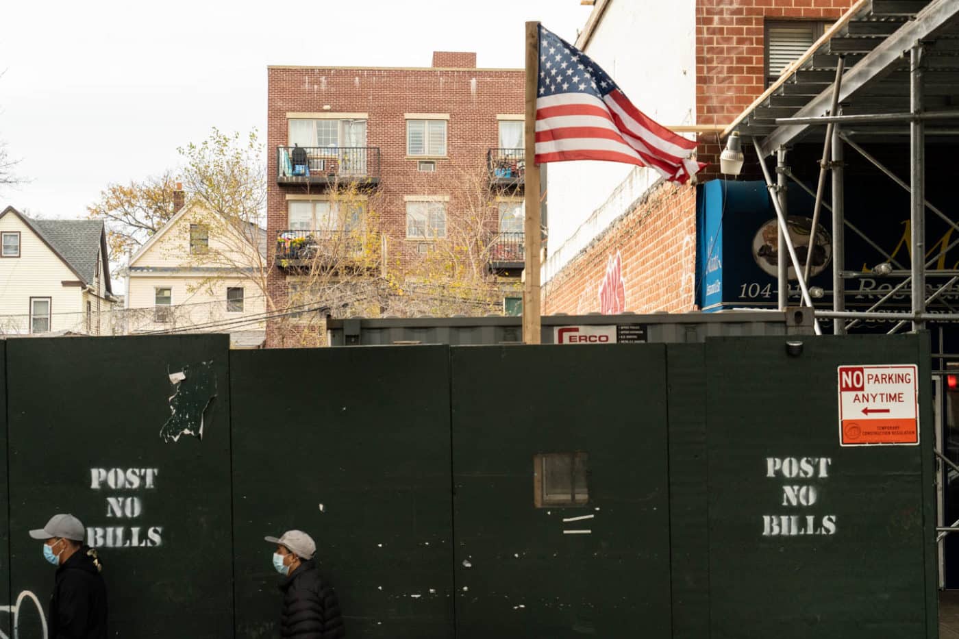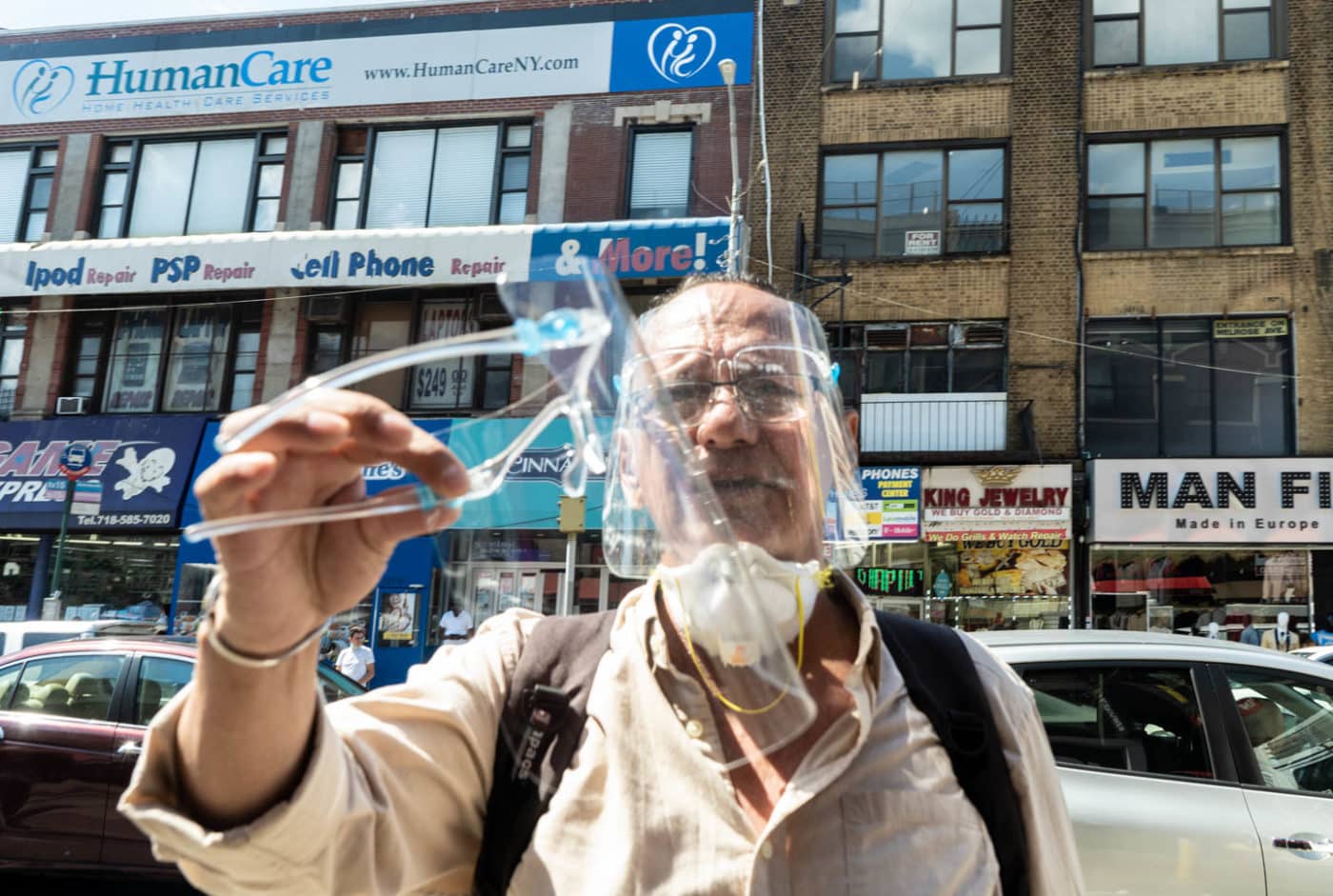 “Covid-19, Covid-19, Covid-19.” Young man singing as he walks along Roosevelt Avenue, Queens, September 27.