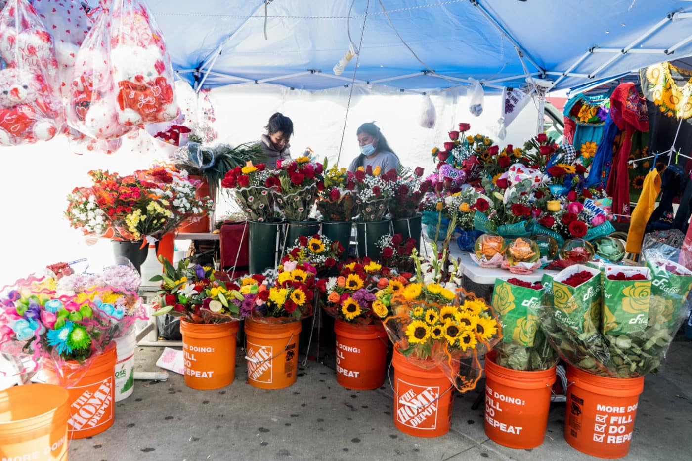 The articles for sale include fruit—papayas, bananas, chunks of watermelon—in Ziploc bags; flowers, jewelry, sometimes homemade; used clothes and shoes; plugs to fit common computerized devices; cellphone protectors, sunglasses, plastic toys, balloons, and celebratory items such as hearts. Food vendors sell prepared juices, hot dogs, corn-on-the-cob, sausages, and assorted beverages. The merchandise for sale varies according to the seasons, national holidays, religious feast days, and other celebrations. Dominican and Colombian vendors often mark their place of business with their country’s flag, Blacks display the African American flag. African vendors sell body oils, beads, and Black soap. Ecuadorians sell colada morada, a traditional fruit drink. Popular items are bags, knockoffs from luxury brands such as Gucci, Fendi, and Louis Vuitton. Flowers are sold everywhere for special occasions such as Mother’s Day and Valentine’s Day, and every day in the proximity of hospitals. Resellers hawk used shoes and clothes.