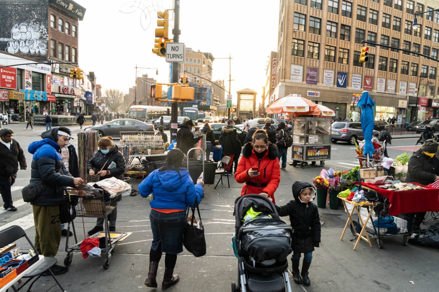 The line of Black and Hispanic street vendors along Roosevelt Avenue in Queens follows the elevated subway tracks for miles. And in the Bronx, peddlers line up for blocks along the four converging streets leading to the intersection known as the Hub. For decades, vendors have been selling produce and other wares in crowded, low-income locations. But restrictions on doing business indoors due to the pandemic have vastly increased their numbers and the variety of products they offer. In New York City’s minority communities, clusters of street peddlers are becoming one alternative to traditional, often closed-down retail shops.