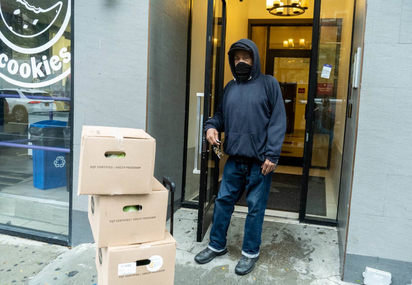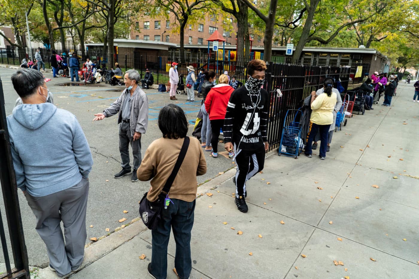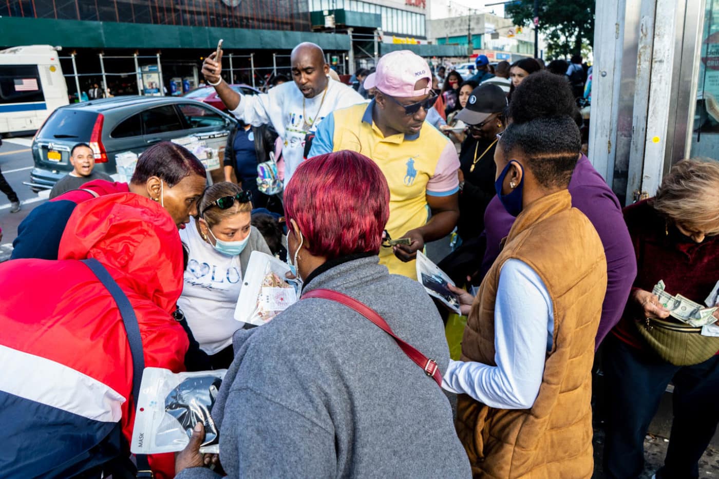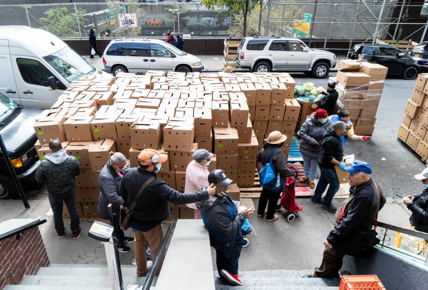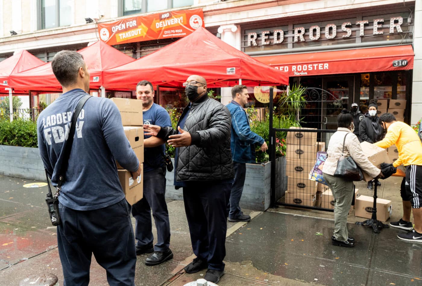 On October 13 in Harlem, I saw a man at a bus stop telling others who were waiting for the bus: “They have fruits and vegetables at Red Rooster, you can get as many boxes as you want.” The Red Rooster is an expensive, famous, landmark restaurant. Opening a box, he told them: “A sweet potato like this costs $3, and the food in a box like this costs between $37 and $40.” I asked a person distributing the food in front of the restaurant about this, and he replied that for the first seven months of the pandemic they had been giving away prepared food in paper bags. Just then a fire truck stopped by, and the firemen got out, picked up three boxes, and put them inside the truck. When I asked why firefighters with a job and a salary were getting free food, the person in charge told me: “It is not about money, it is about the community.” Joe, a retired sanitation worker, was taking three boxes to sick and disabled neighbors in his building who, he told me, were unable to come themselves. “They can’t come. I bring it to them,” he said.