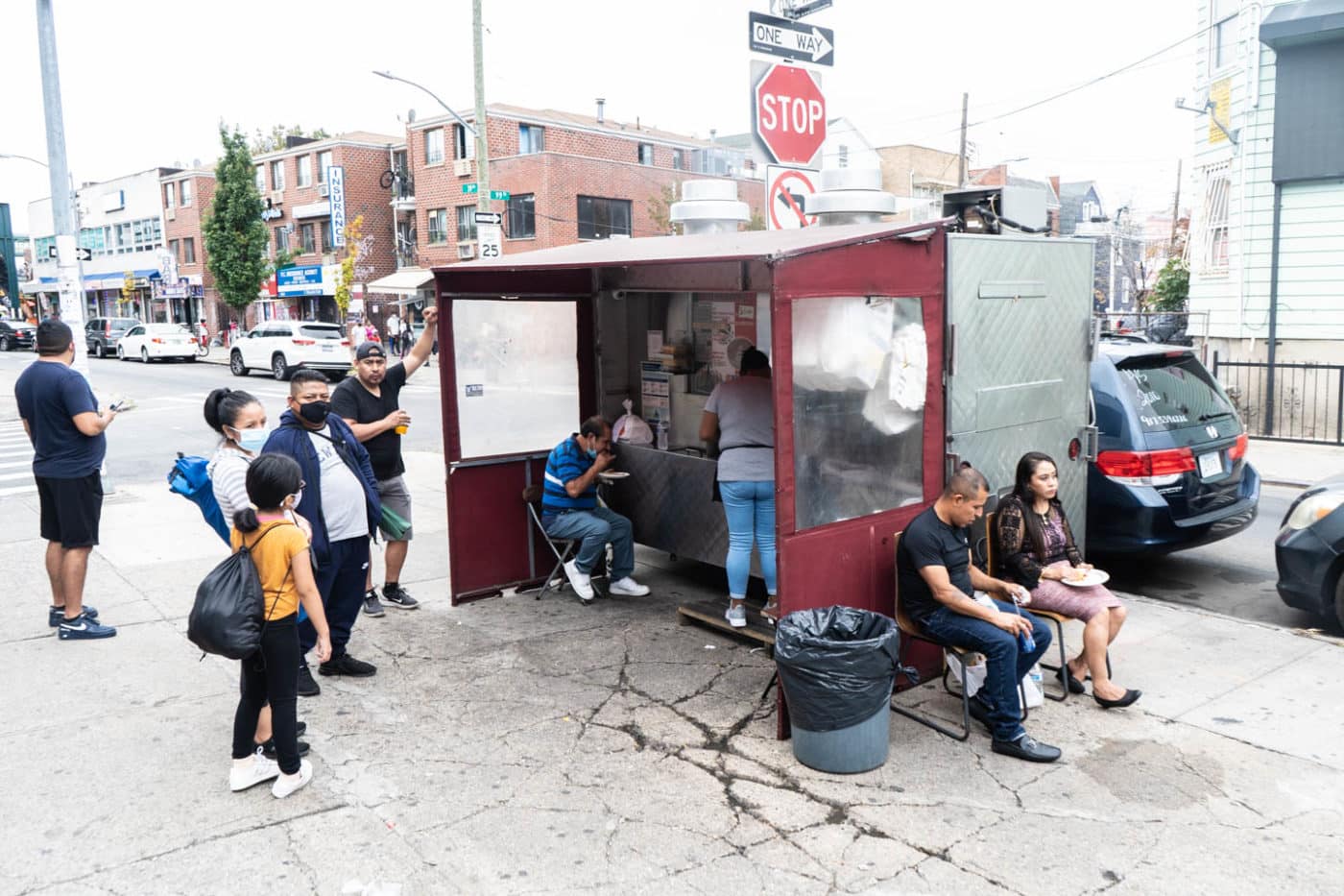 “You can’t take pictures of the business, it is private,” the cook of La Esquina, Salchipapa Ecuatoriana, told me. When I replied that I was photographing the streets of New York City, he told me to photograph the sidewalk, not his business. Roosevelt Avenue, Queens, October 24, 2020.