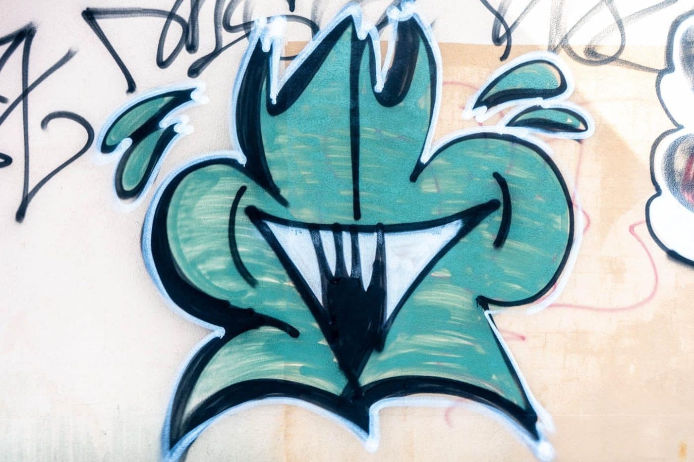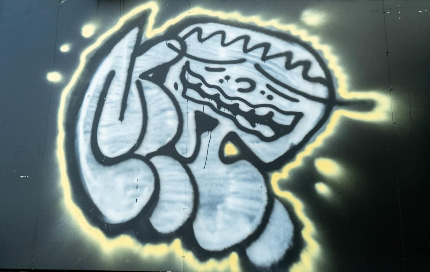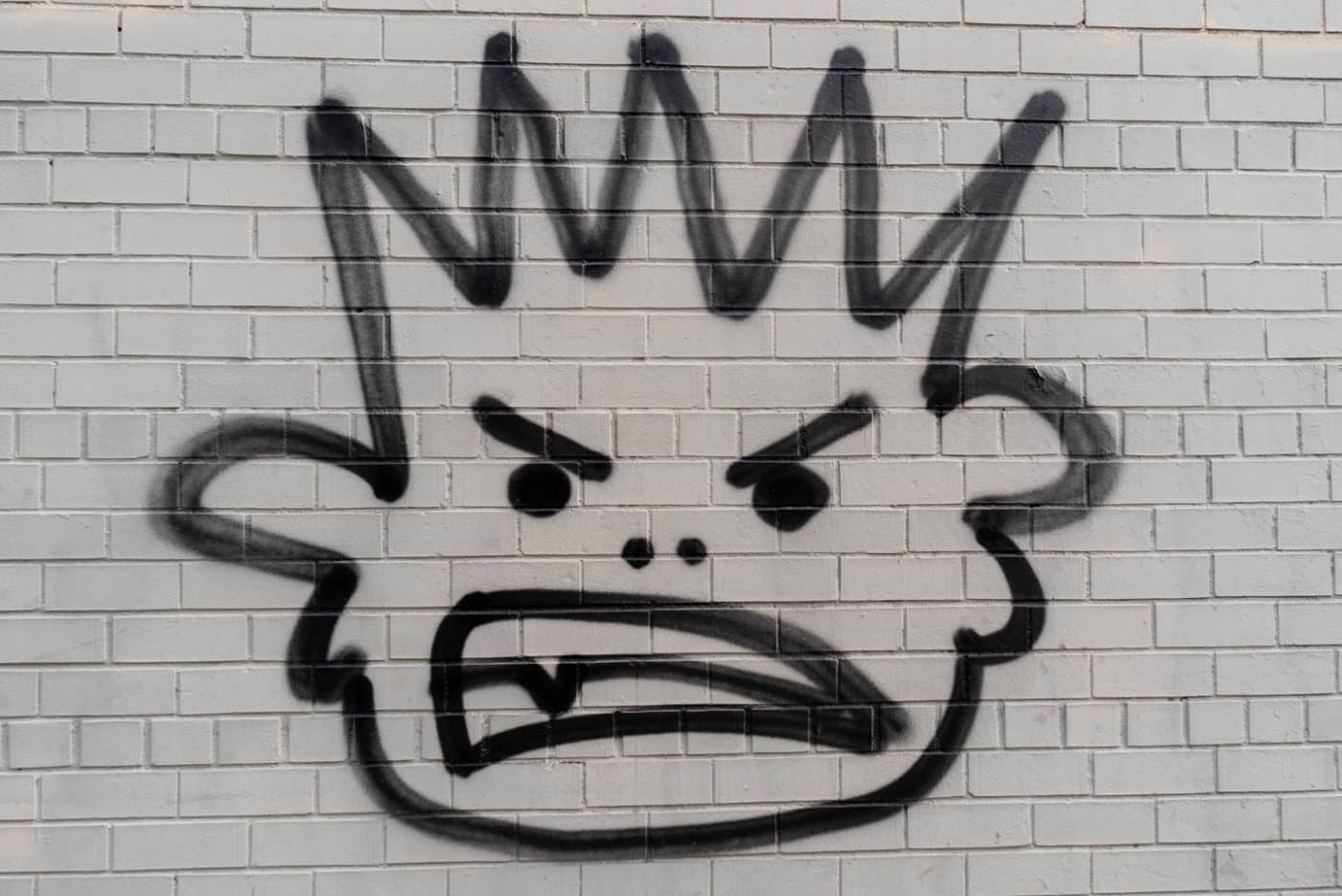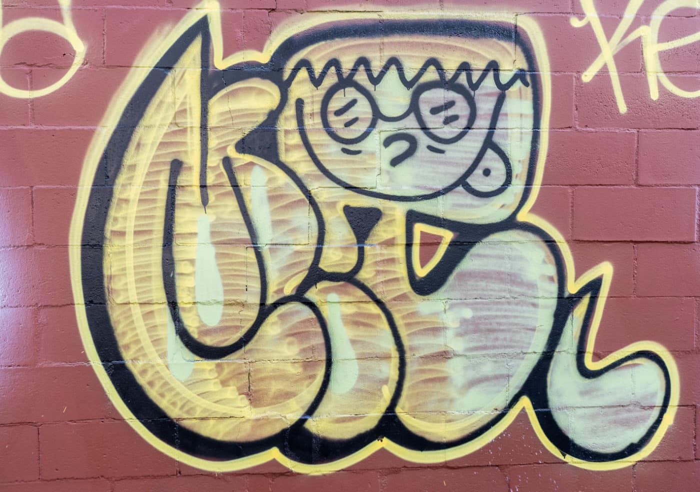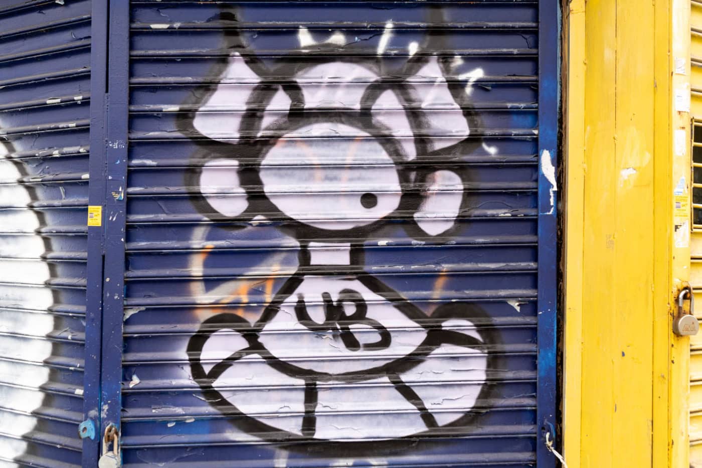 Vergara is most drawn to the more-informal graffiti scribblings of the street; modest inscriptions that emit a pulse of broader preoccupations. Is that rabbit wearing a mask? A hovering Martian, with big ears, wears one. Is that a smiling flower? Bart Simpson’s hairline? A lilting crown? Or have Covid-19’s spiky protrusions impressed their form into the collective consciousness and now lurk around every corner, sometimes shedding droplets as it spreads?