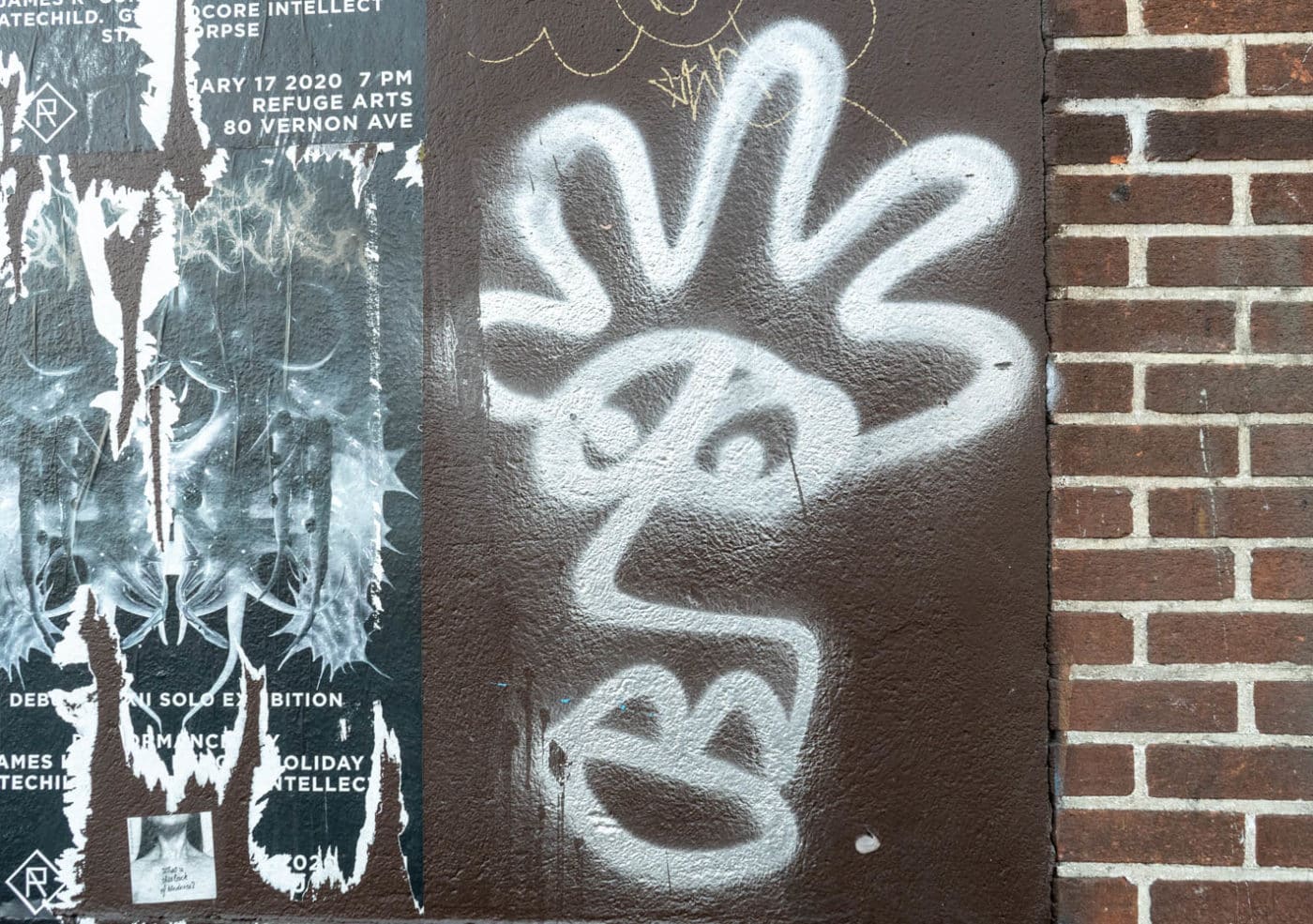 At Broadway and Palmetto Street, I saw a leftover piece of a sign pasted on a wall: “White people used to use Black babies as alligator bait,” it read, signed “Joseph.” A few yards west, I saw a poster depicting a bright-eyed Black baby holding $50 bills in his hand and $100 bills in his headband, also signed “Joseph,” with a link to his Instagram account.