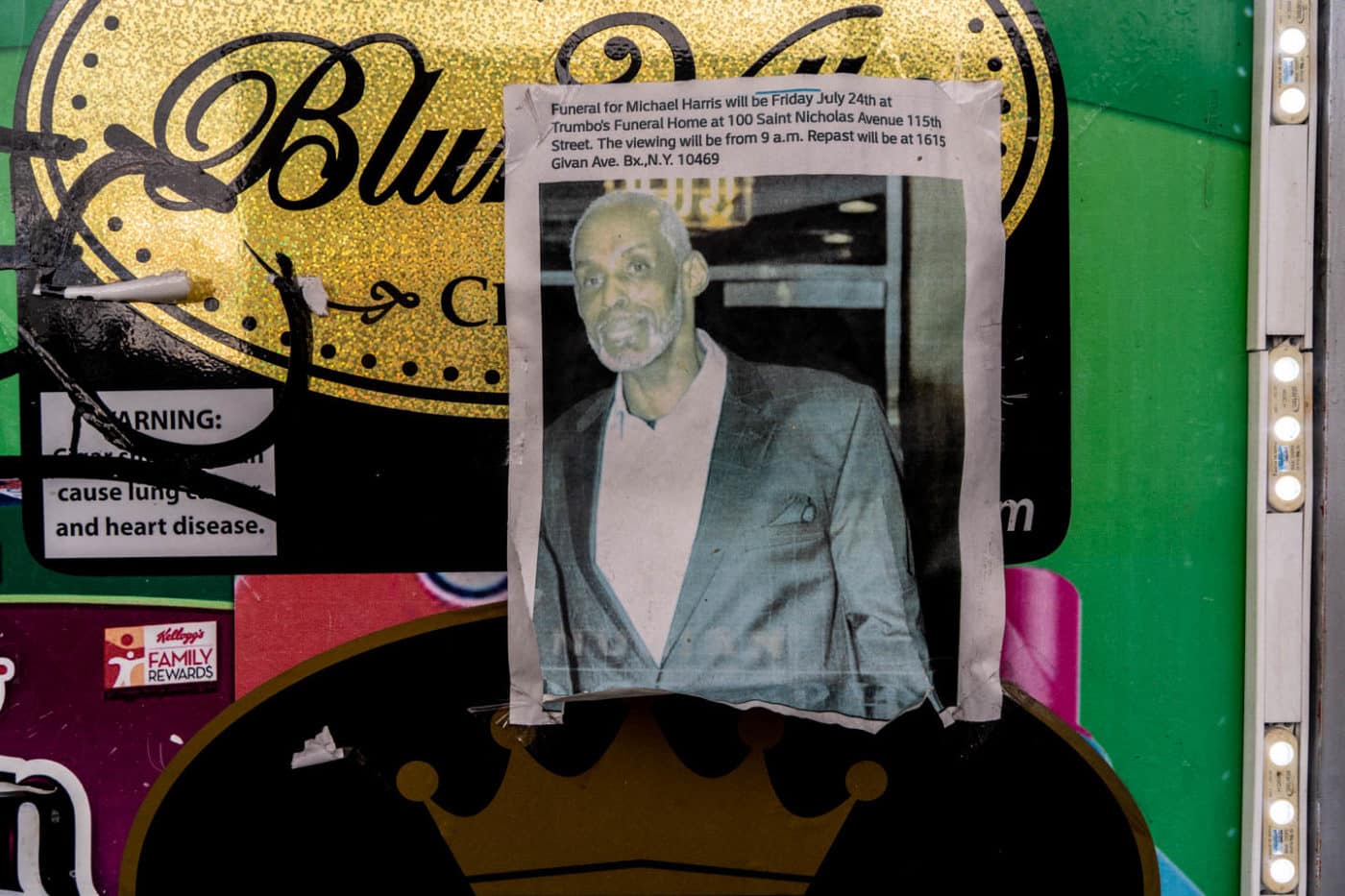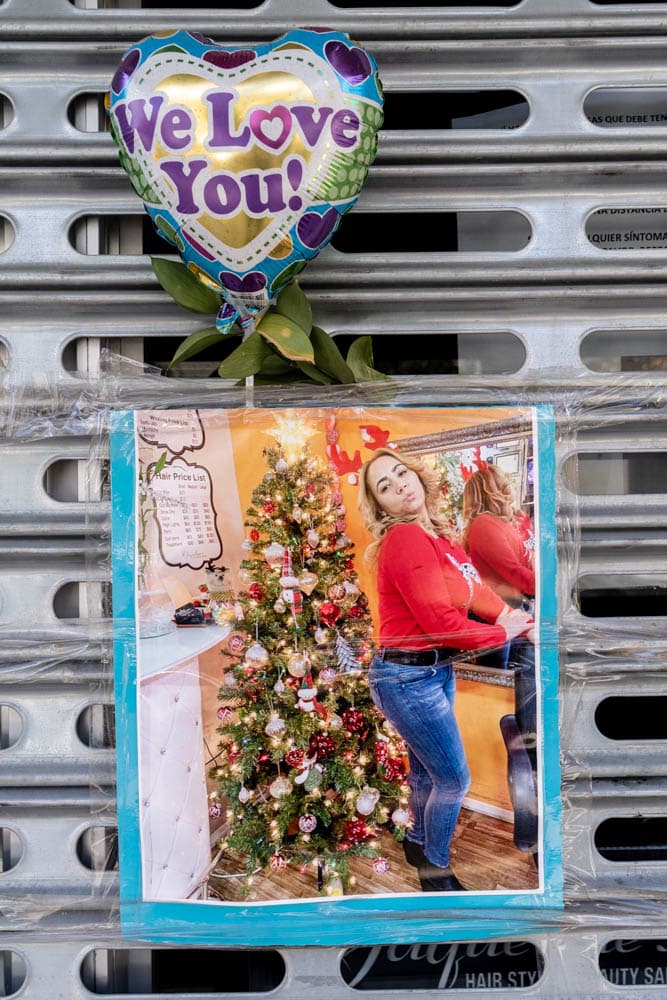August 30, 2020: My first impulse when I saw the memorial portrait of Yaqueline on the gates of her beauty salon on 101st Street, Corona, Queens, was that she was another victim of the pandemic. But when I asked, a neighbor told me that she had been knifed by her jealous partner. He asked me if I was “looking for a lost relative,” explaining that there were no public portraits of the victims of the pandemic in the neighborhood.