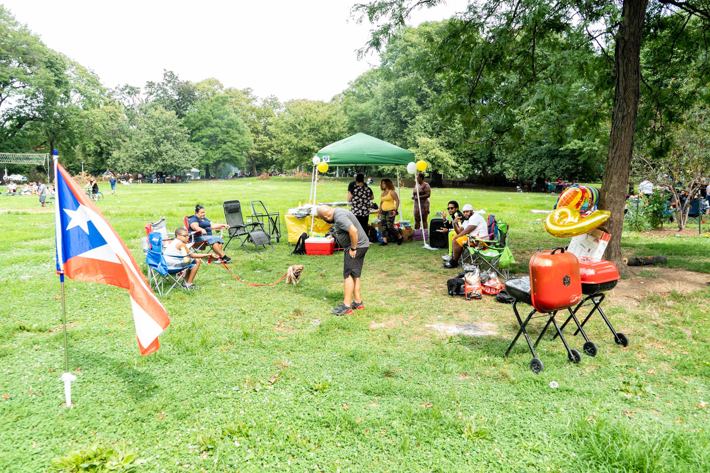 August 15, 2020: Benji and his dog, Benji, celebrating his mother-in-law’s 66th birthday with family at a picnic, Claremont Park, Bronx, New York. © Camilo José Vergara