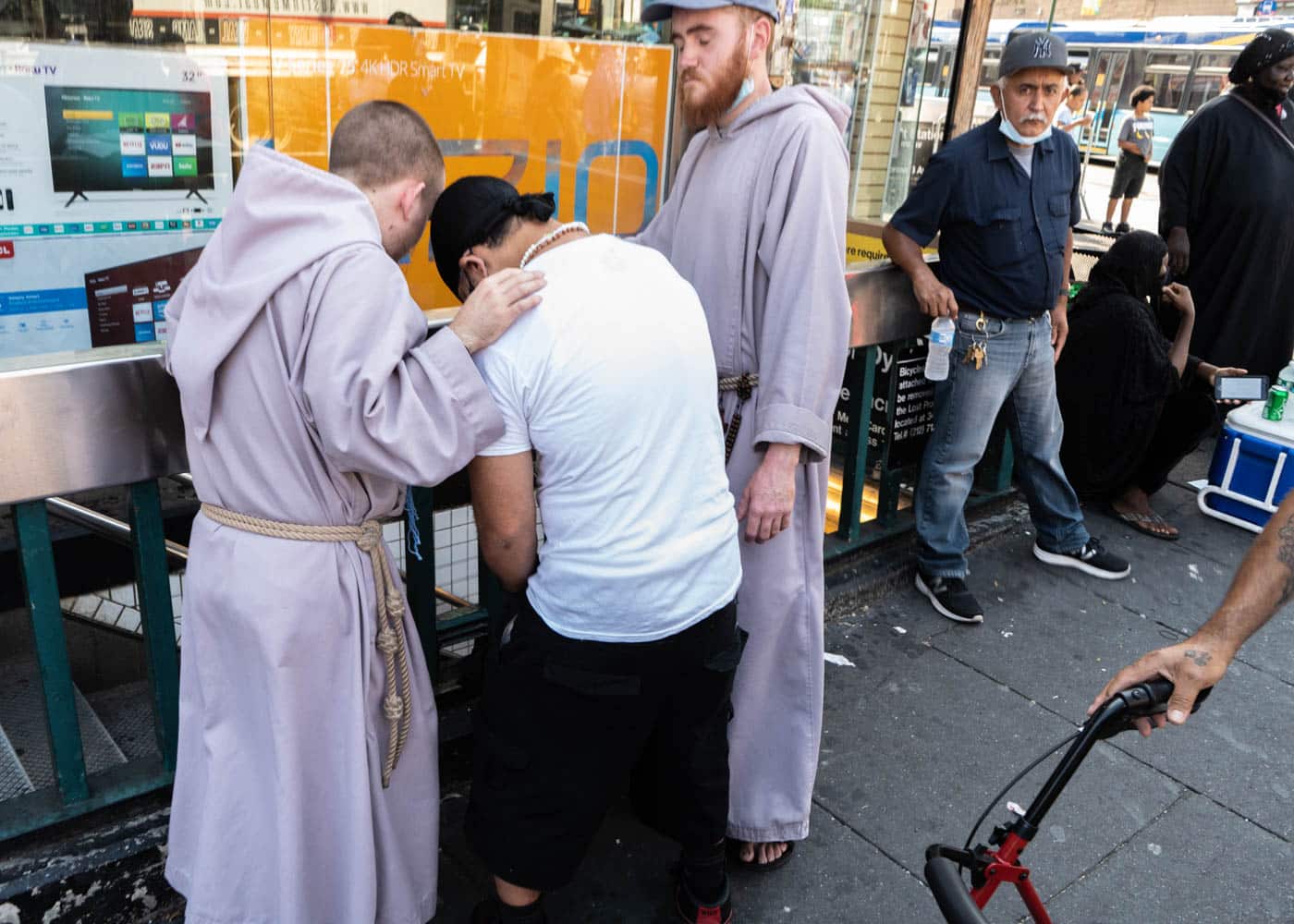 September 8, 2020: Praying over a young man on East 149th Street at Third Avenue, Bronx, New York. © Camilo José Vergara