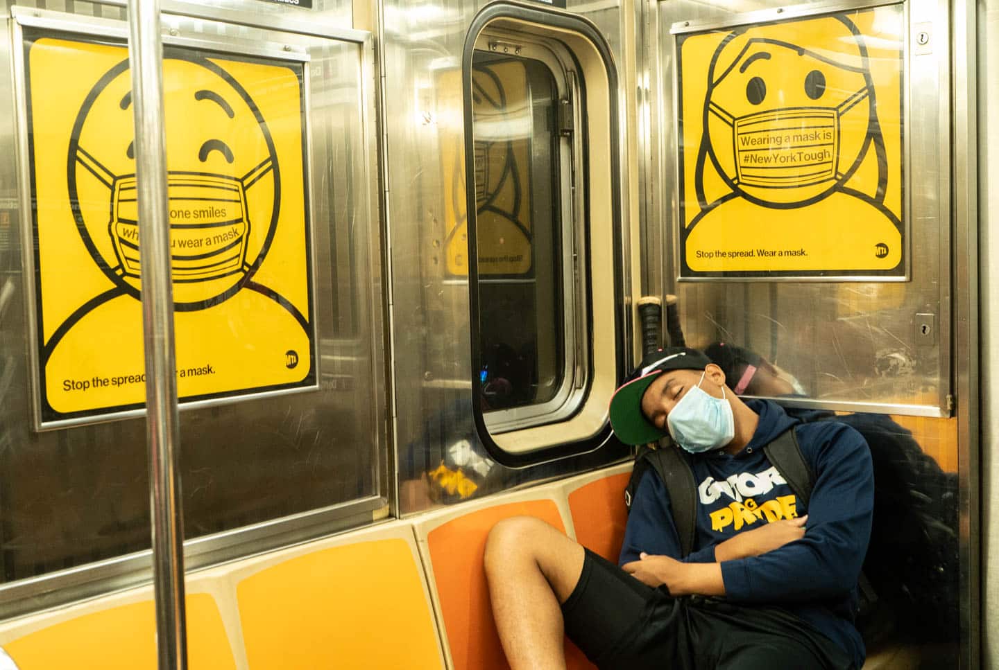 September 15, 2020: Sleeping on the 1 train, Upper West Side, New York, New York. © Camilo José Vergara