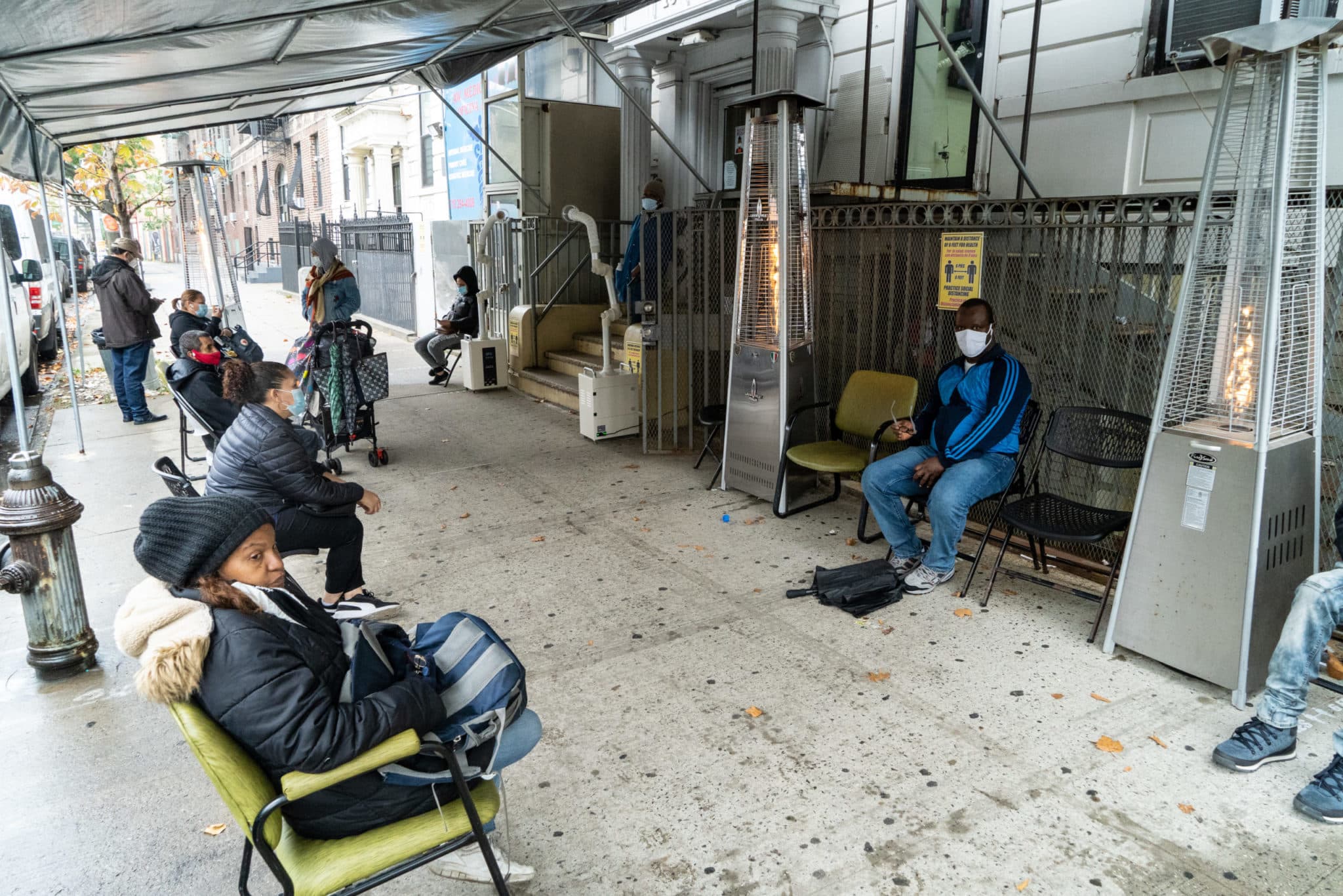 October 26, 2020: Improvised outdoor waiting room, medical offices at 1624 University Avenue/Dr. Martin Luther King Jr. Boulevard, Bronx, New York. © Camilo José Vergara