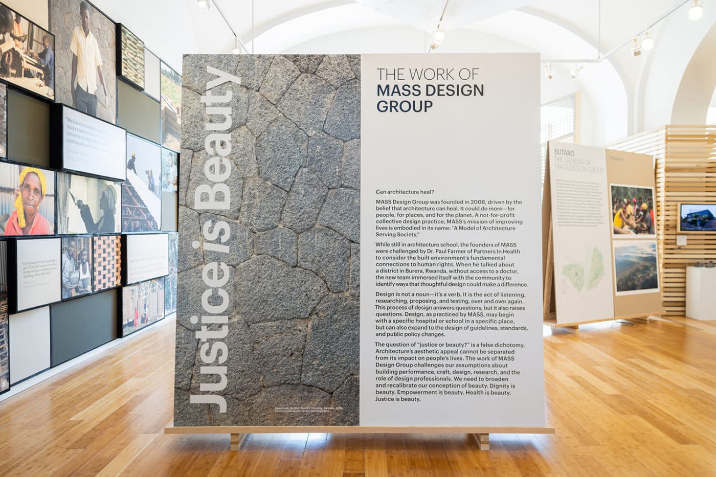 The 3,000-square-foot exhibition introduces MASS Design Group’s extraordinary portfolio, including completed buildings, proposed projects, and applied research initiatives. Photographs, videos, renderings, and models convey the firm’s groundbreaking approach to its architectural projects examining how the firm’s nonprofit status enables it to take on ambitious projects that traditional design firms might not, and how its collective organizational structure supports its mission to address society’s most challenging problems through socially conscious design strategies. In the Great Hall, visitors can experience a demonstration structure of the firm’s Lo-Fab Pavilion, created in collaboration with students and faculty at Virginia Tech School of Architecture + Design’s Center for Design Research for the 2015 Boston Design Biennial.