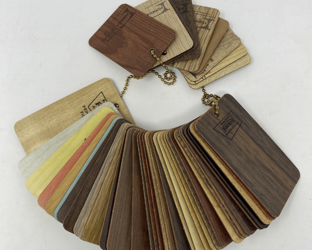 As a longtime user of Formica laminate custom countertops, Stuart Bollock and Bollock Enterprises, Inc. generously donated several samples of Formica woodgrains and solid colors to the Museum in 2025. This donation builds on a previous donation from Bollock Enterprises, Inc. and two donations from Formica, Inc. These samples fill in gaps in previous Formica donations, providing context to the brand’s iconic history and bringing the Museum’s collection closer to full comprehensiveness.