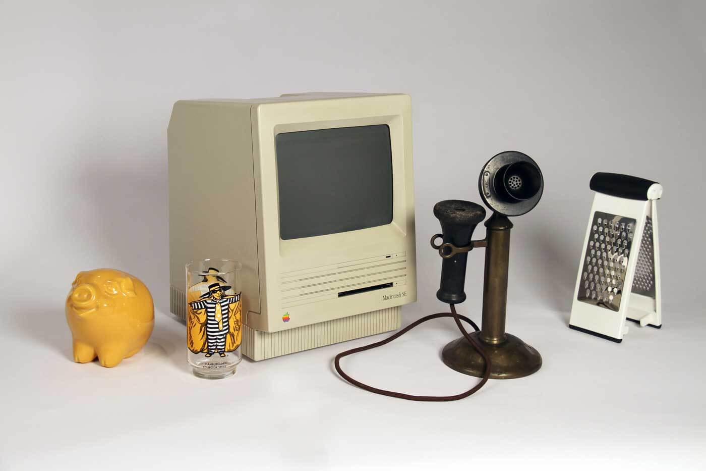 A dramatic display of hundreds of household goods used over the course of the past several centuries includes a butter churn; a poster of Farrah Fawcett; a fondue set; and a hand-painted screen door. Each item tells its own story of how a house becomes a home.